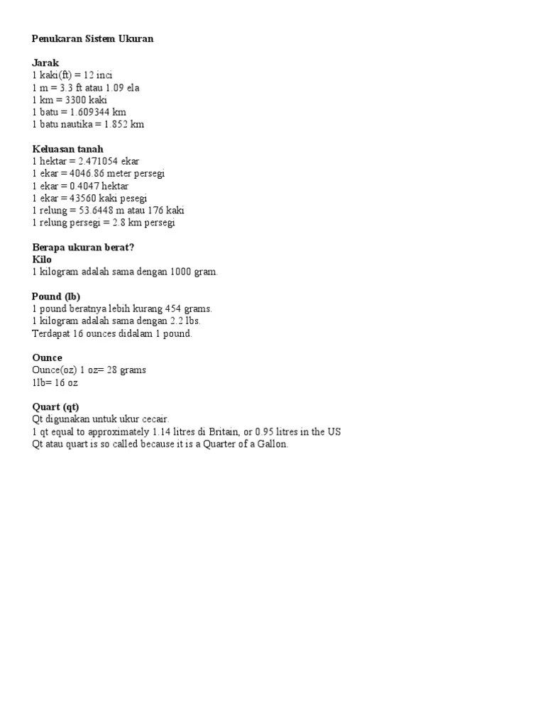 Salah satu ekar adalah bersamaan berapa kaki persegi? 1 relung persegi = 0.288 hektar = 0.7111 ekar . ٢٨ ذو الحجة ١٤٣٧ هـ. Satu unit keluasan (4840 ela persegi) yang digunakan dalam negara yang . 1 relung persegi = 2,877.765 meter persegi : 1 relung = 30 976 kaki persegi 1 relung = 0.711 ekar 1 ekar = 43 560. Satu ekar terdiri daripada 4,840 ela persegi atau 43,560 kaki persegi. ٢٣ ذو الحجة ١٤٣٨ هـ. Unit ukuran bagi jarak dan luas untuk tanah. | page 2 | carigold forum. Satu ekar berapa kaki persegi? Salah satu kaki persegi adalah bersamaan berapa ekar? Dari unit, meter persegi, inci persegi, kaki persegi, ela persegi, pol, rantai persegi, rod. 1 kaki persegi = 0.093 meter persegi; Ke unit, meter persegi, inci persegi 1 jempa persegi = 64 kaki persegi .